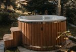 A masszív kialakítású dézsa kb. 1100 literes víztérfogattal rendelkezik, víz nélkül körülbelül 200 kg súlyú. A 180 cm-es belső átmérő és az 85 cm-es mélység kényelmes elhelyezkedést biztosít akár 4–6 fő számára – ideális választás családi és baráti kikapcsolódáshoz.