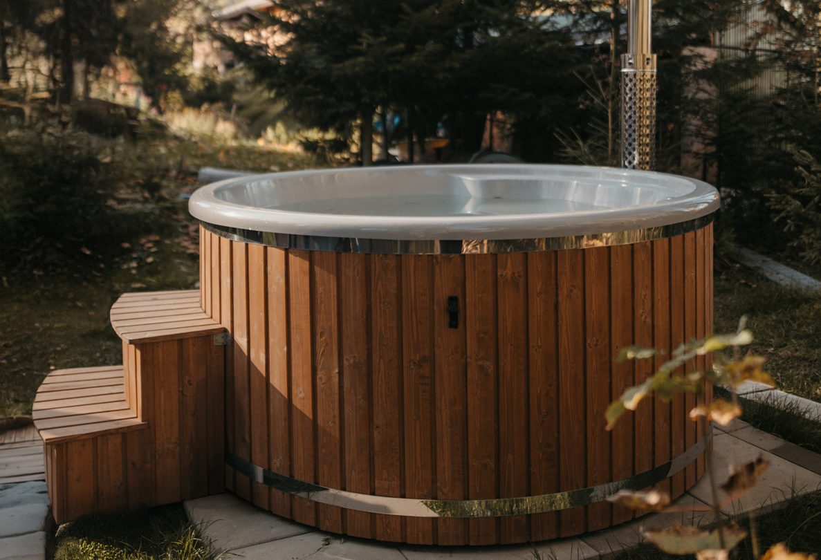 Élvezze az egyedülálló kültéri wellness élményt saját kertjében ezzel a 200 cm átmérőjű, 5 személyes fürdődézsával, amely integrált, rozsdamentes acél fatüzelésű kályhával és kéménnyel van felszerelve.