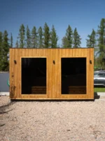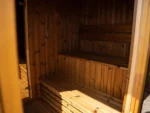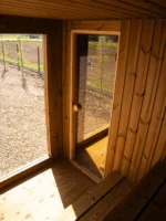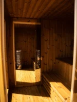 A tágas belső tér lehetővé teszi, hogy akár 6 személy is kényelmesen használja a szaunát. A modern dizájn, a nagyméretű üvegfelületek és a természetes fa burkolat elegáns megjelenést biztosítanak, amely harmonikusan illeszkedik bármilyen kertbe vagy teraszra.