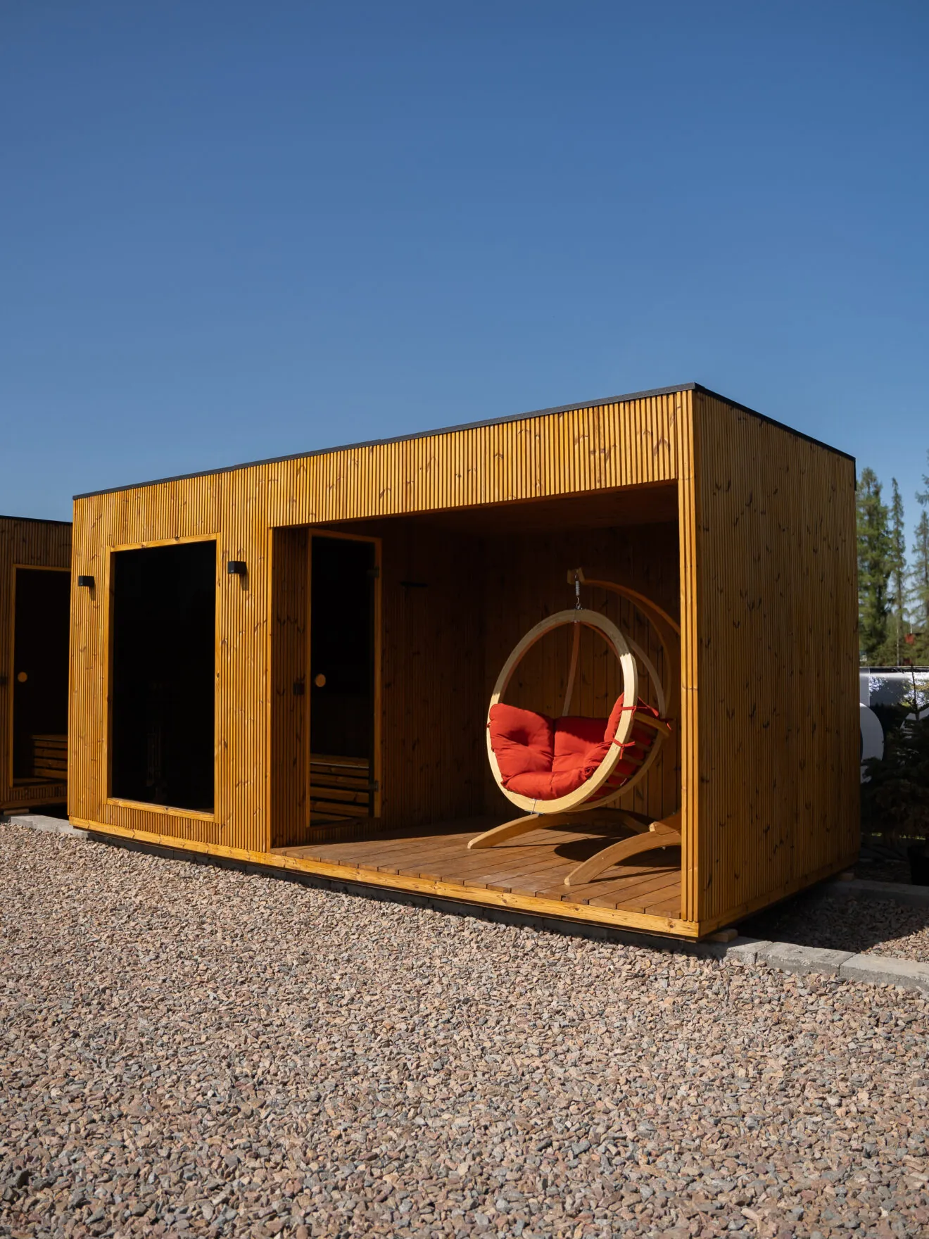 A belső tér hangulatát LED világítás teszi még kellemesebbé, amely modern és nyugodt atmoszférát teremt a szaunázás során. A természetes fa burkolat és a letisztult forma elegáns megjelenést biztosít, amely harmonikusan illeszkedik bármilyen kertbe vagy teraszra.