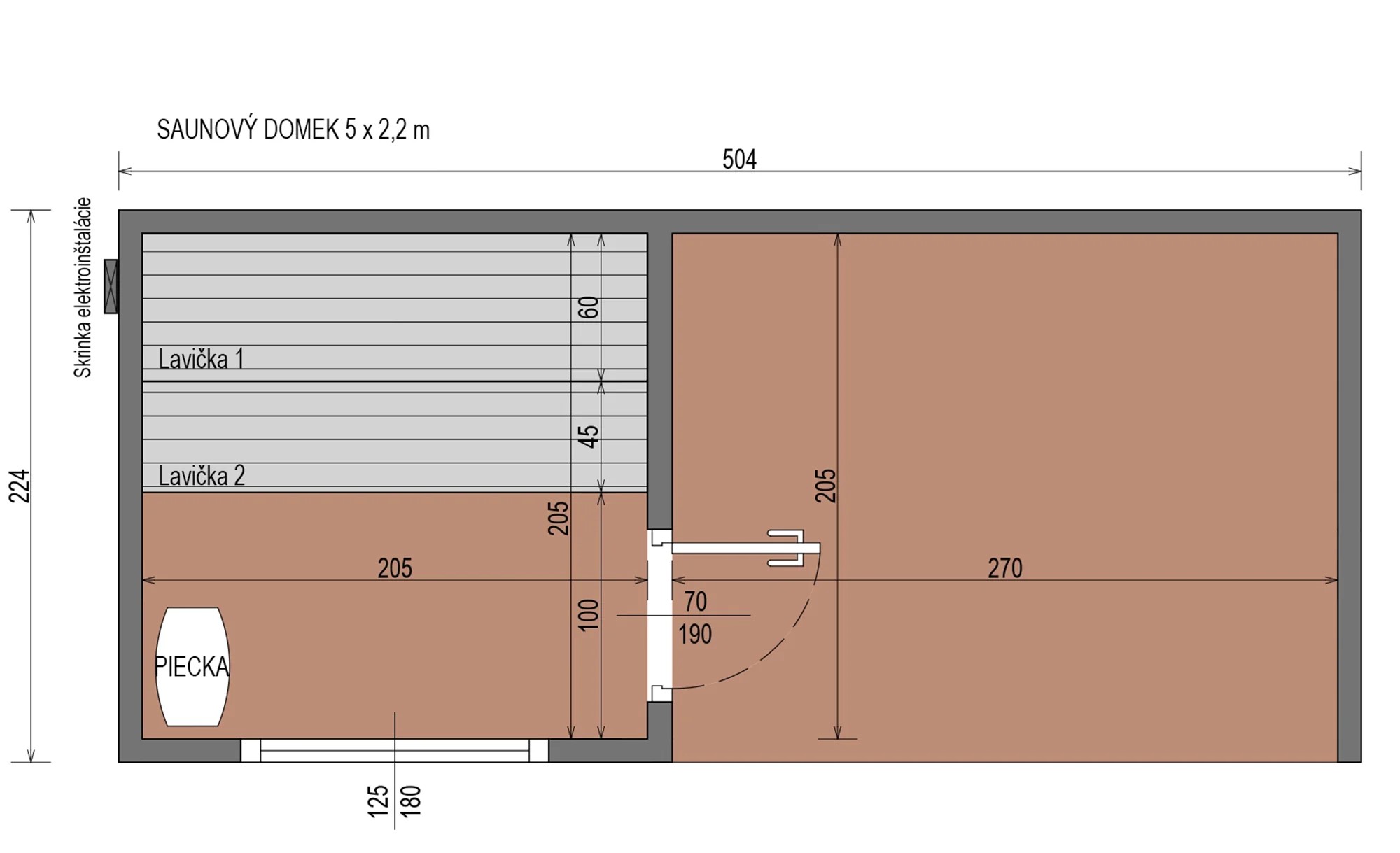 Az 5 × 2,2 méteres méret elegendő helyet biztosít akár 4–6 személy számára, így ideális családi pihenéshez vagy baráti szaunázáshoz. A gondosan megtervezett szerkezetnek és a minőségi anyagoknak köszönhetően a szauna hosszú élettartamot és megbízható működést garantál.