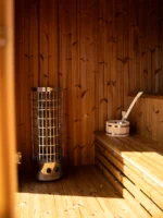 A falakban 50 mm vastag ásványgyapot szigetelés található, amely segít megtartani a hőt a szauna belsejében. Ennek köszönhetően a szauna gyorsan felmelegszik, és hatékonyan tartja a kívánt hőmérsékletet.